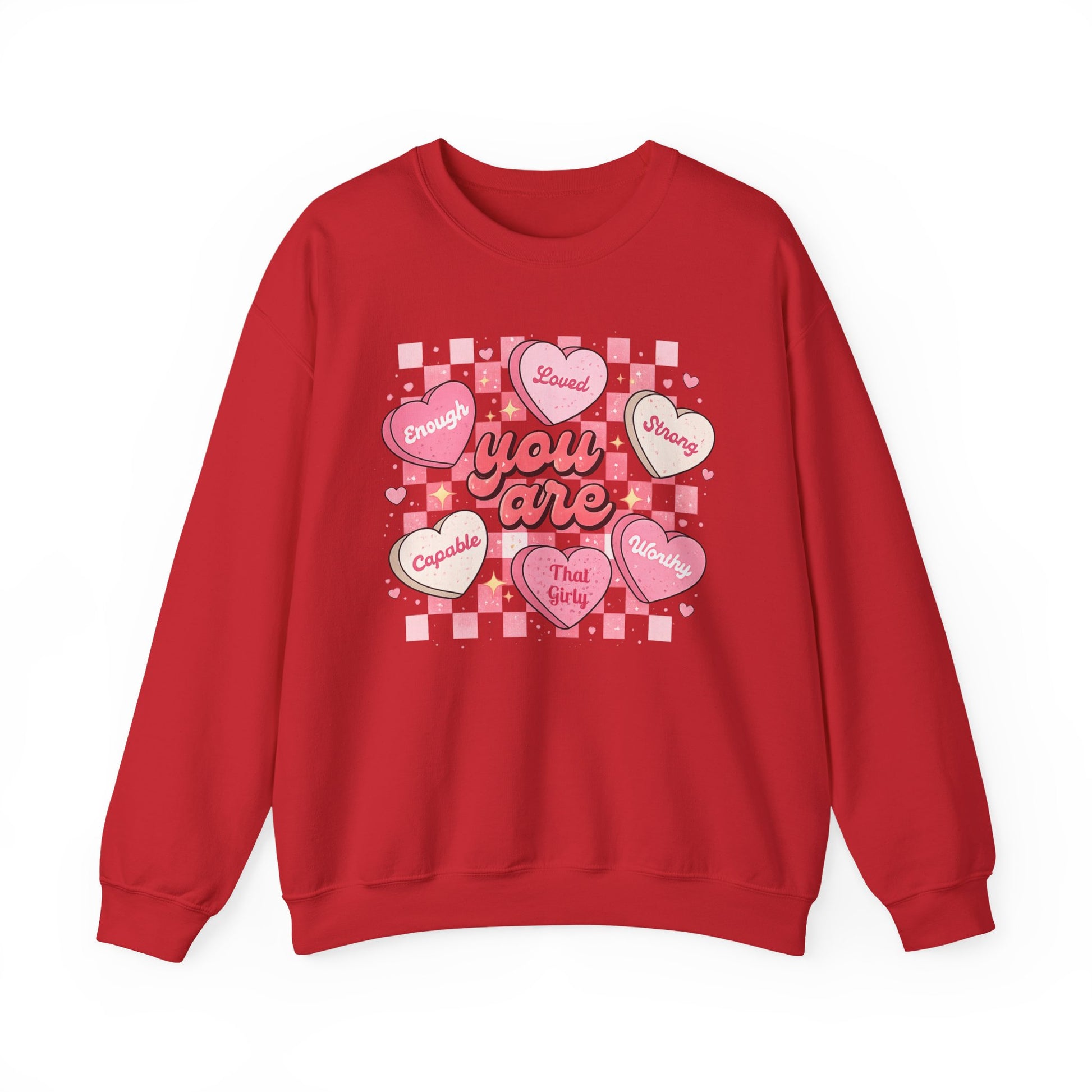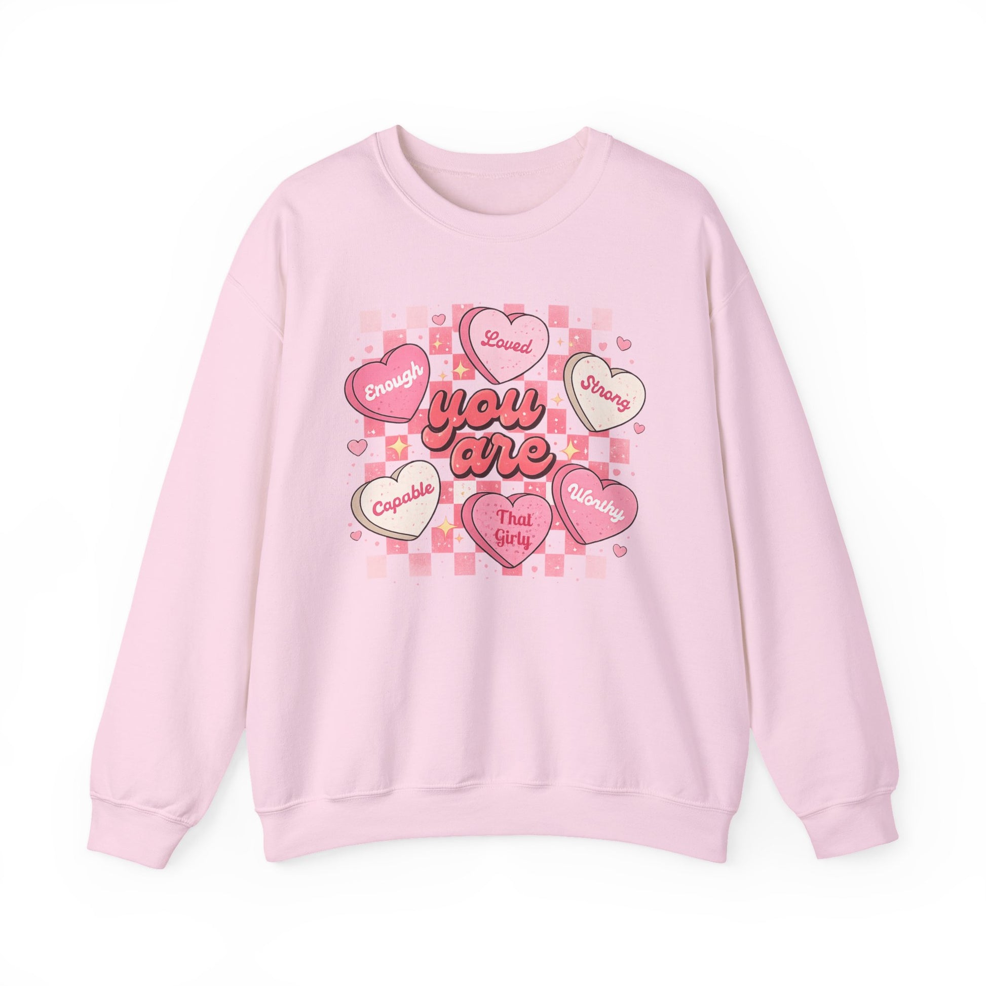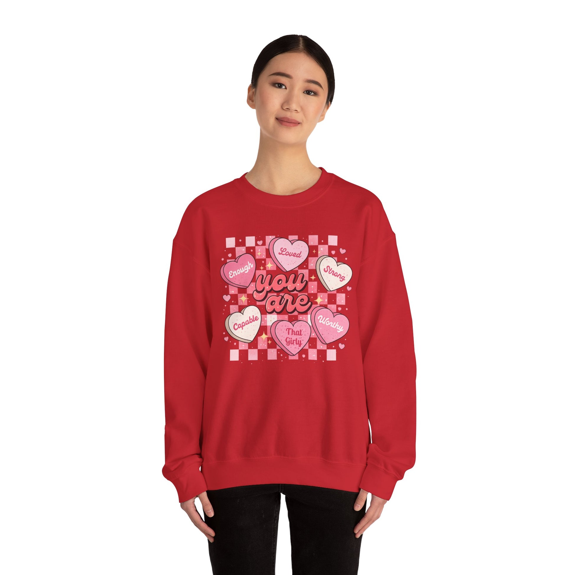 Crewneck Sweatshirt — "You Are" Heart Candy Graphic, Women's Valentines Sweatshirt
