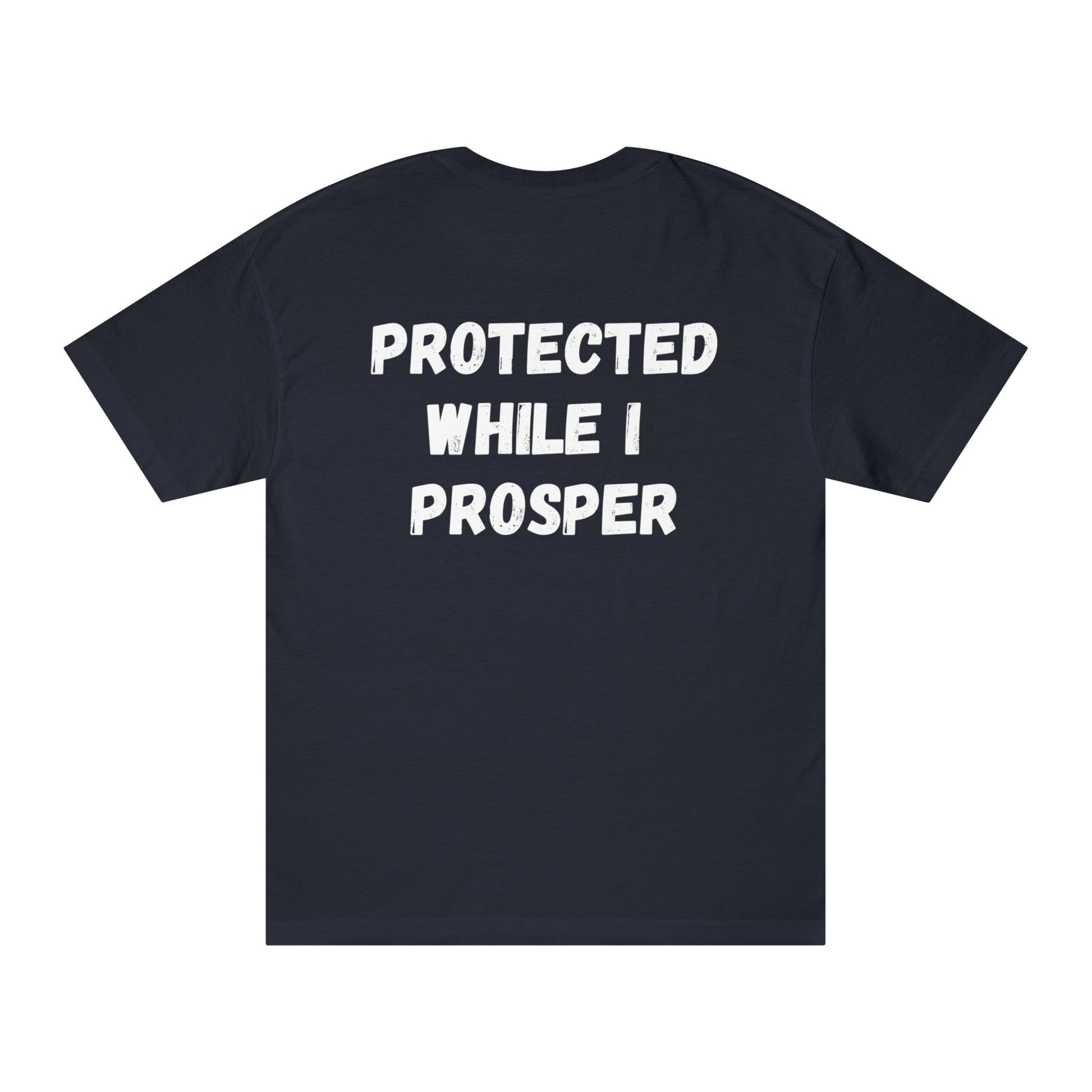 A soft, classic-fit tee that carries a quiet, confident message. The front bears a small, right-hip line: “LORD WATCH OVER ME,” while the back reads, “PROTECTED WHILE I PROSPER” in bold, slightly textured lettering. It’s the kind of shirt worn on slow Sunday mornings, to community gatherings, or tucked under a jacket heading to prayer or service. The medium-weight cotton drapes naturally and the ribbed collar returns to shape after wear. Thoughtful details like twill neck tape and double-needle hems keep this tee comfortable and durable through repeated washings and everyday life. Wear it when you need a subtle affirmation — a reminder of faith, forward motion, and grounded confidence.